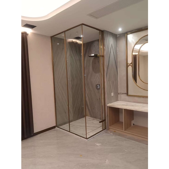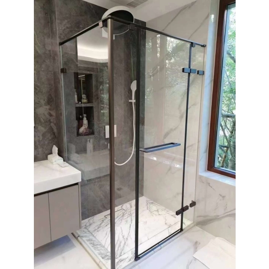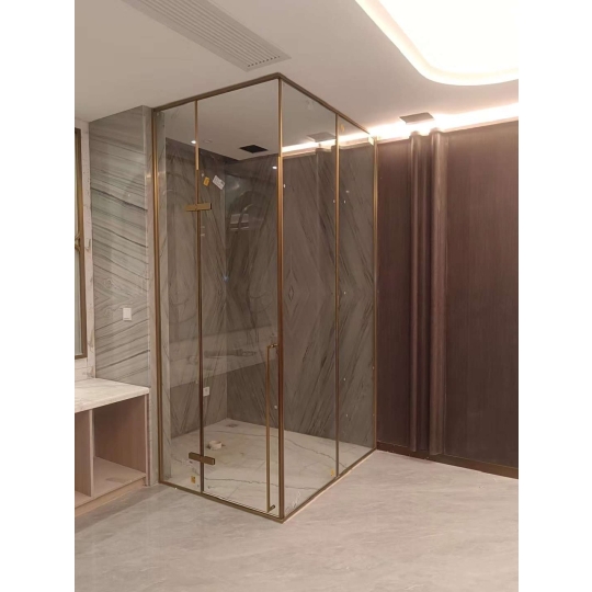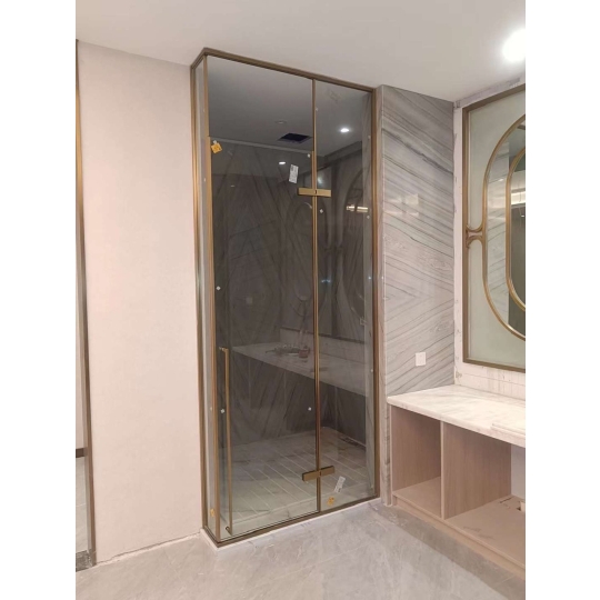PHÒNG TẮM CỬA MỞ QUAY 1 CÁNH 1 FIX CÓ VÁCH BẢN LỀ CHỮ NHẬT KẸP HÔNG